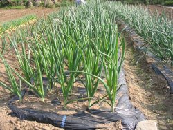 そうでした、「ソニック(タマネギ)」がピンポン玉より大きくなったものがありましたので、8個ほど収穫してみました。まだ少し若いのですが、毎年待ちきれず早めに収穫してしまうのです。早速、夕食の食卓にオニオンスライスで登場しました。一年ぶりの初物は甘くて、みずみずしくて、・・・。これだけは生産者でなければ味わえない楽しみですね。葉の部分も味噌で炒めいただきました。こちらもシャキシャキとして美味しくいただきました。