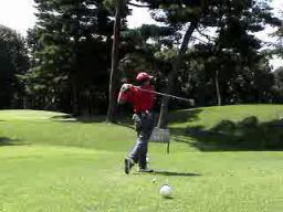 今回は職場の上司M・GSLさんとツーサムとなりました。 M・GSLさんがビデオカメラを持参し自分のスイング研究。毎ホールの互いのスイングを録画、欠点のチェックをしました。(DVDにコピーしてもらったのでテレビでチェックしました) いかに自分が素振りのとおりに振れていないか解りました。(素振りは結構いい振りしてると思うんだけど・・・)